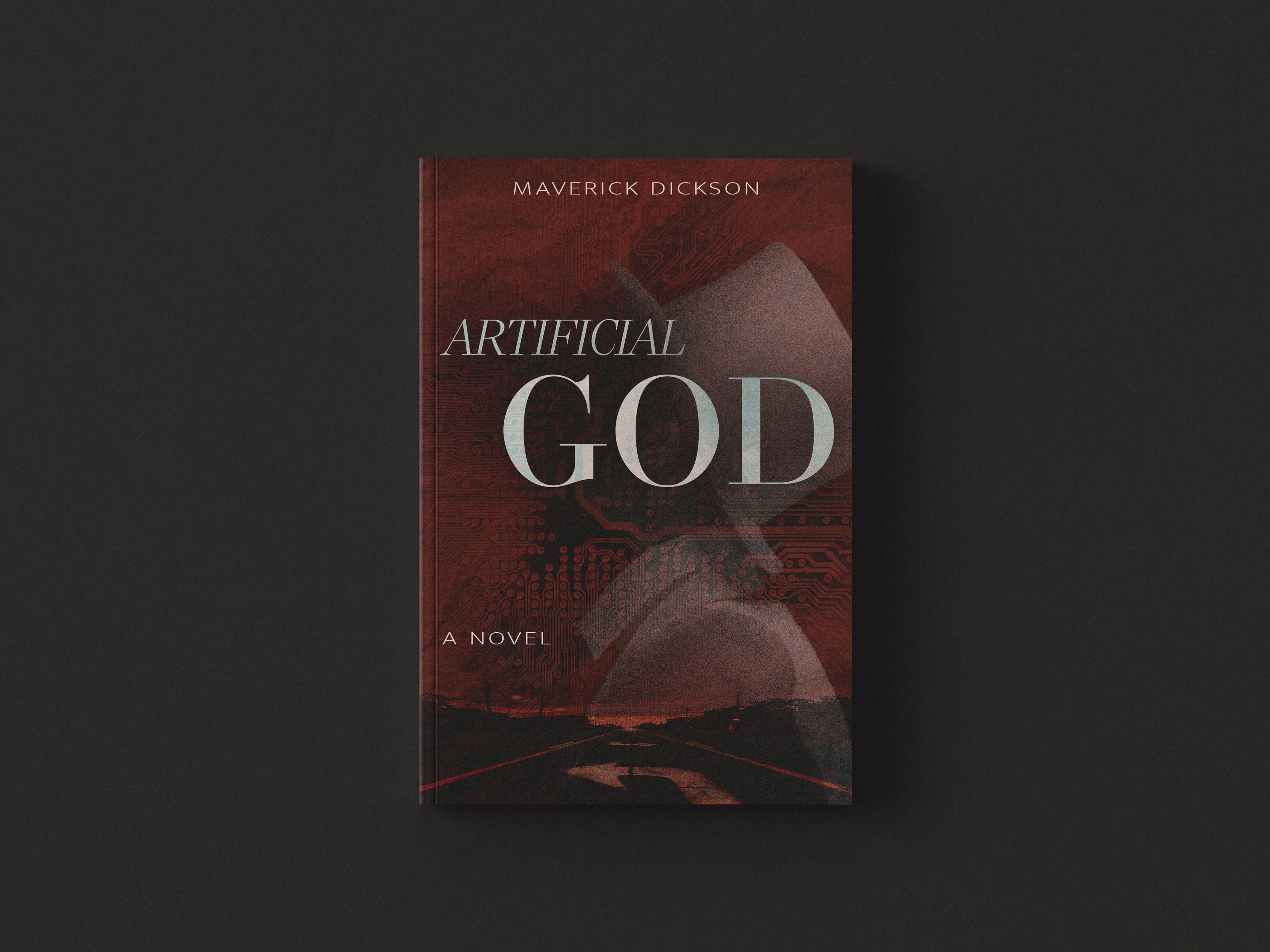 Concept cover design for a novel on the opportunities and consequences of artificial intelligence integrating into all parts of modern society.